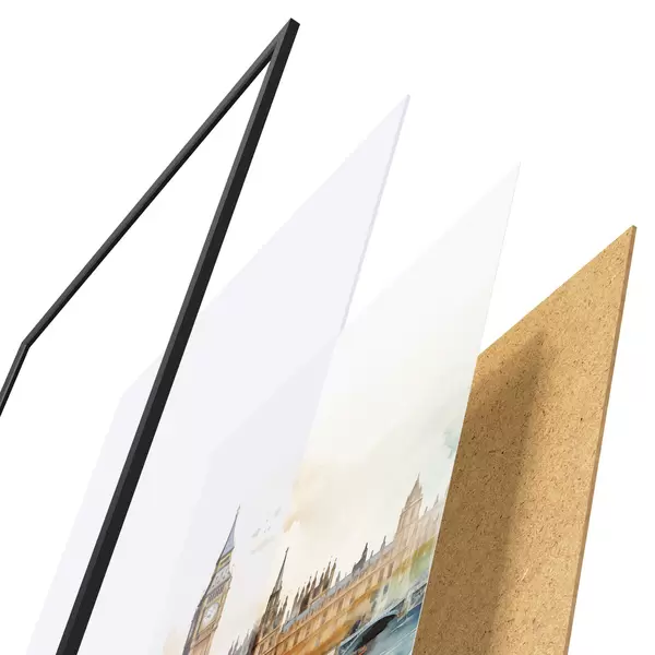 Plakāts sastāv no rāmja, pleksstikla, iespiestā attēla un skaidu plātnes pamatnes. Plakātu var uzreiz piekarināt pie sienas, pateicoties aizmugurē esošajiem stiprinājumiem.