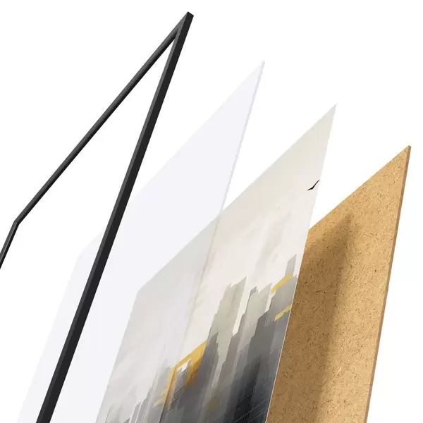 Plakāts sastāv no rāmja, pleksstikla, iespiestā attēla un skaidu plātnes pamatnes. Plakātu var uzreiz piekarināt pie sienas, pateicoties aizmugurē esošajiem stiprinājumiem.