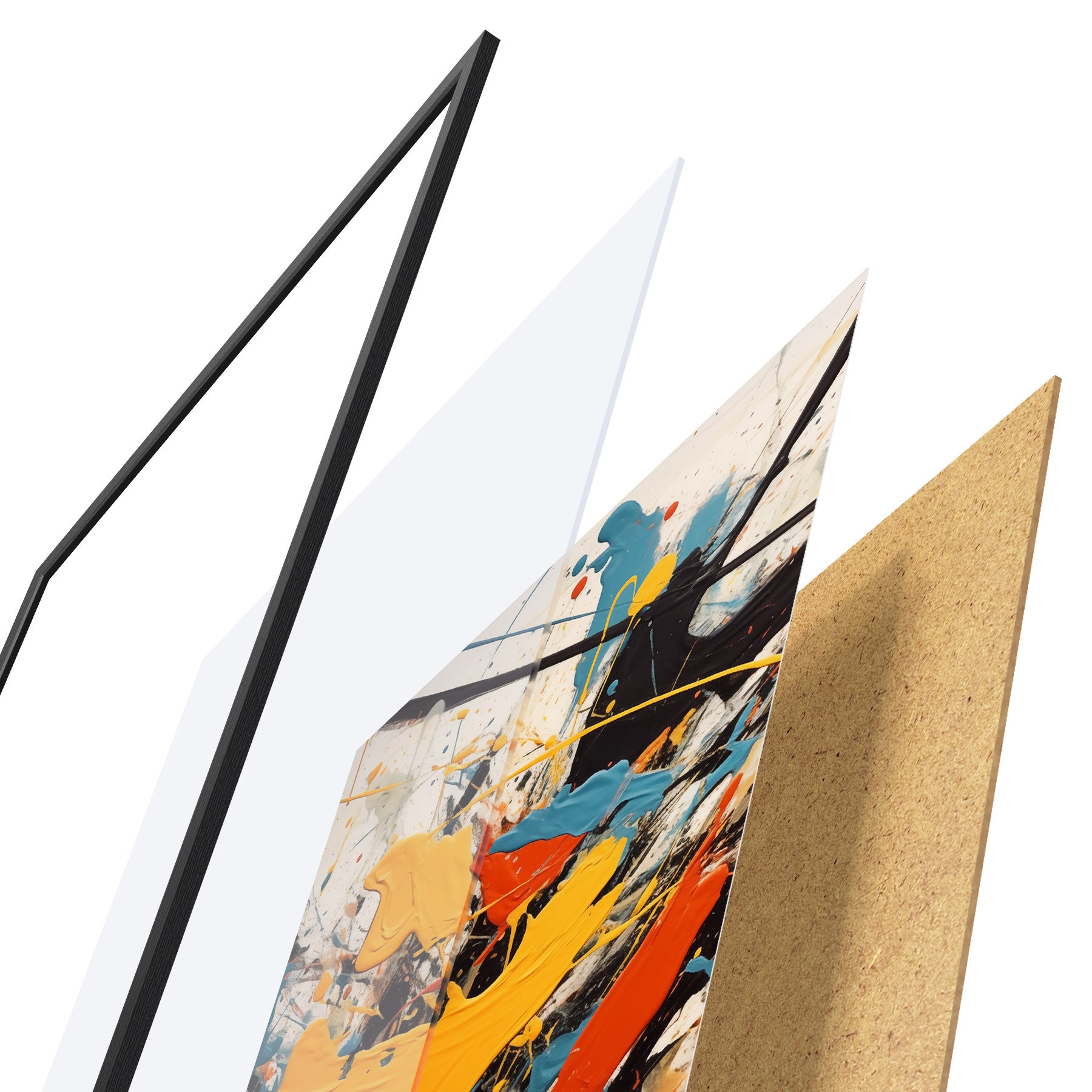 Plakāts sastāv no rāmja, pleksstikla, iespiestā attēla un skaidu plātnes pamatnes. Plakātu var uzreiz piekarināt pie sienas, pateicoties aizmugurē esošajiem stiprinājumiem.