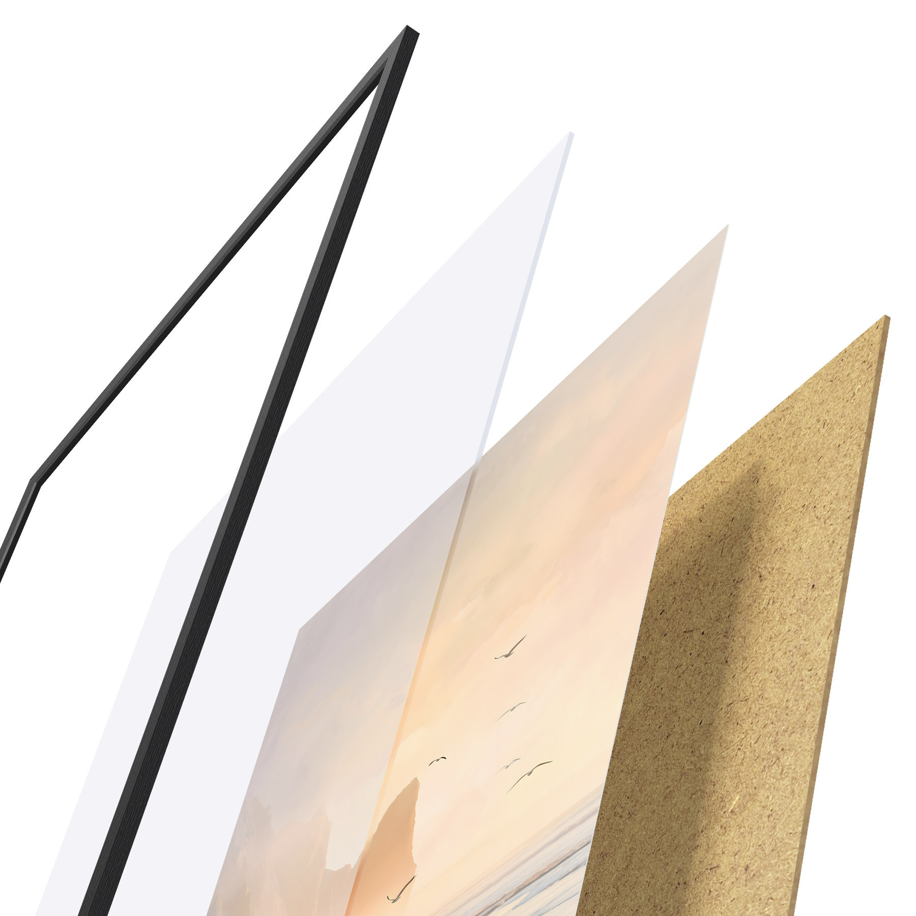 Plakāts sastāv no rāmja, pleksstikla, iespiestā attēla un skaidu plātnes pamatnes. Plakātu var uzreiz piekarināt pie sienas, pateicoties aizmugurē esošajiem stiprinājumiem.