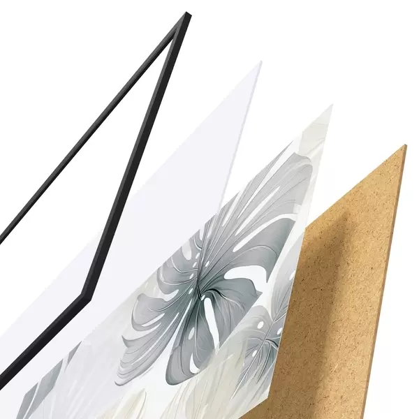 Plakāts sastāv no rāmja, pleksstikla, iespiestā attēla un skaidu plātnes pamatnes. Plakātu var uzreiz piekarināt pie sienas, pateicoties aizmugurē esošajiem stiprinājumiem.
