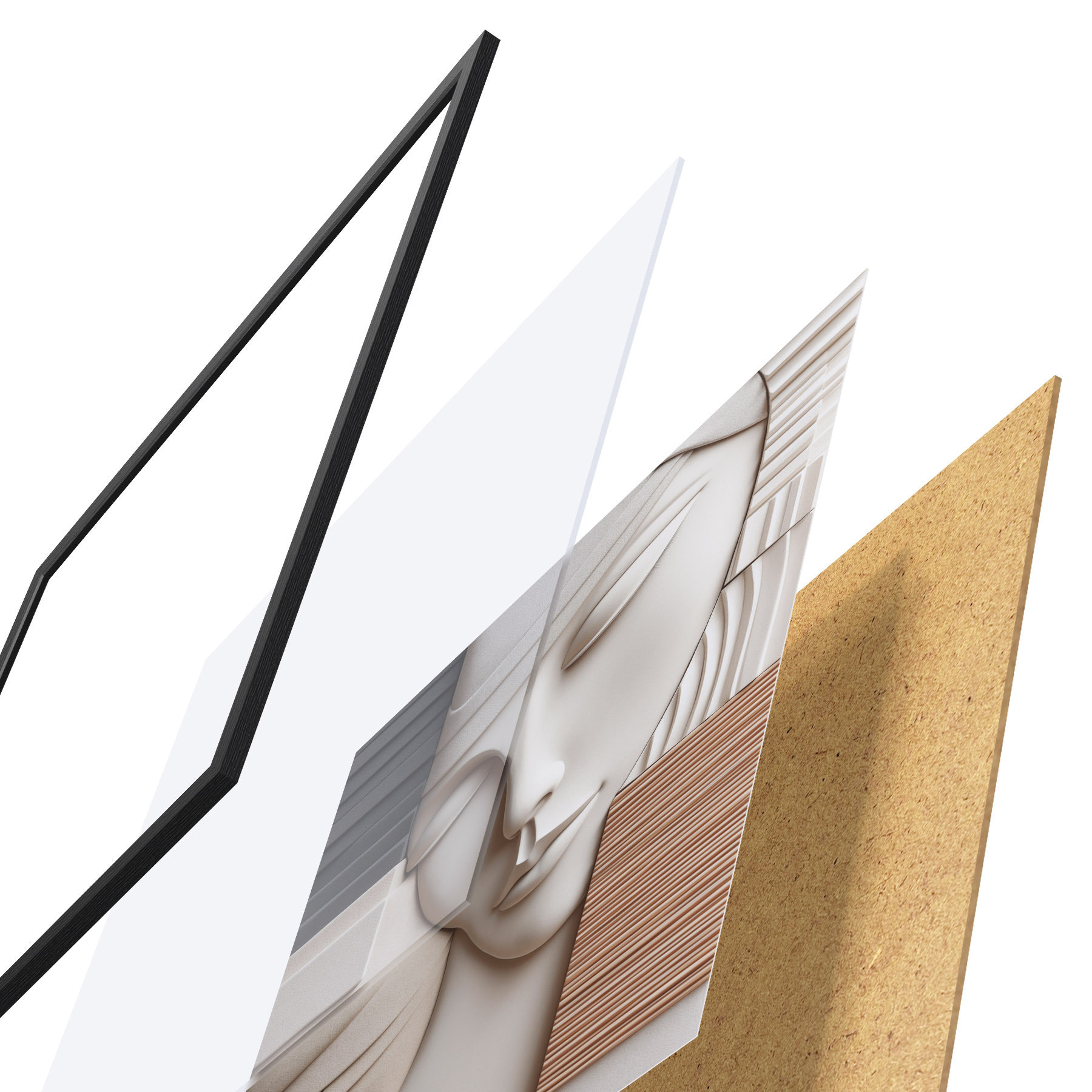 Plakāts sastāv no rāmja, pleksstikla, iespiestā attēla un skaidu plātnes pamatnes. Plakātu var uzreiz piekarināt pie sienas, pateicoties aizmugurē esošajiem stiprinājumiem.