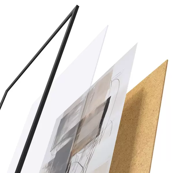 Plakāts sastāv no rāmja, pleksstikla, iespiestā attēla un skaidu plātnes pamatnes. Plakātu var uzreiz piekarināt pie sienas, pateicoties aizmugurē esošajiem stiprinājumiem.