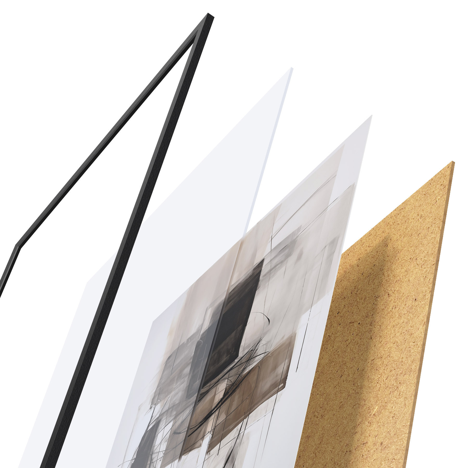 Plakāts sastāv no rāmja, pleksstikla, iespiestā attēla un skaidu plātnes pamatnes. Plakātu var uzreiz piekarināt pie sienas, pateicoties aizmugurē esošajiem stiprinājumiem.