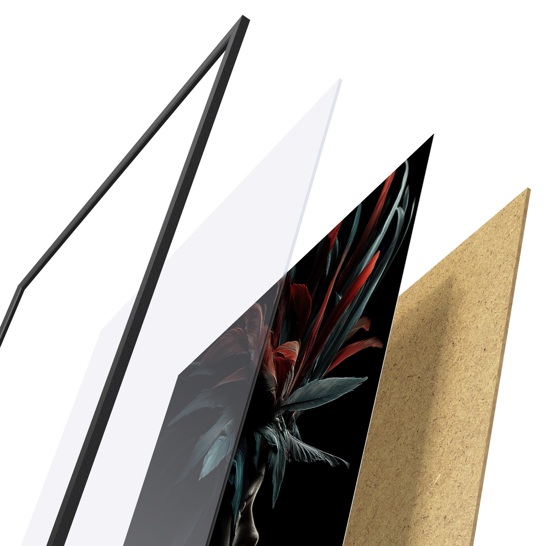 Plakāts sastāv no rāmja, pleksstikla, iespiestā attēla un skaidu plātnes pamatnes. Plakātu var uzreiz piekarināt pie sienas, pateicoties aizmugurē esošajiem stiprinājumiem.