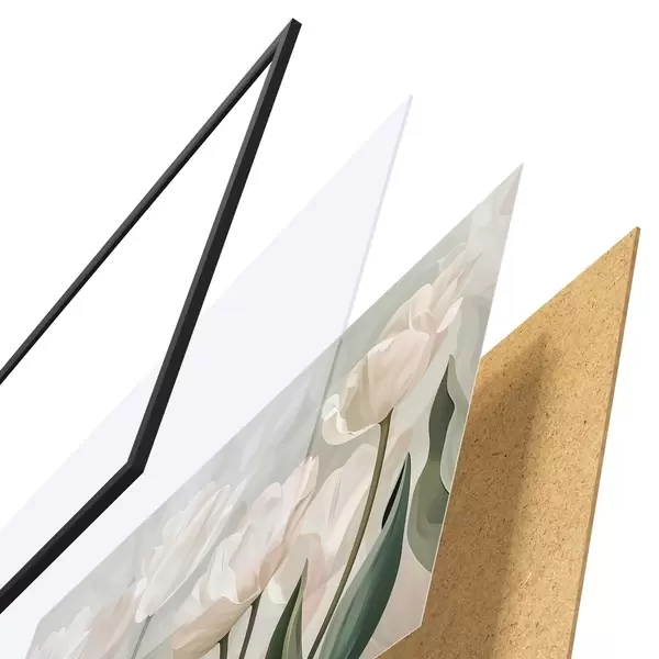Plakāts sastāv no rāmja, pleksstikla, iespiestā attēla un skaidu plātnes pamatnes. Plakātu var uzreiz piekarināt pie sienas, pateicoties aizmugurē esošajiem stiprinājumiem.