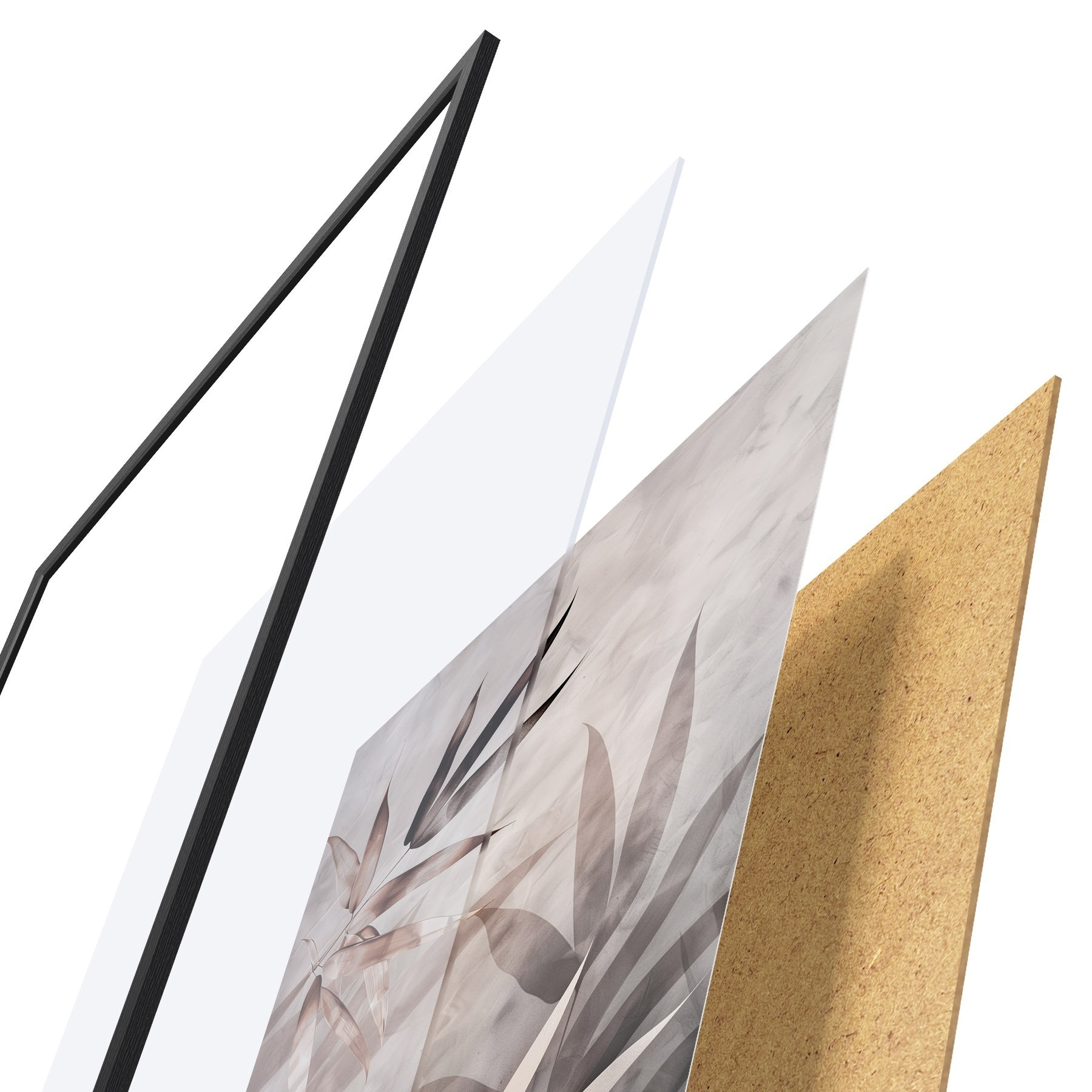 Plakāts sastāv no rāmja, pleksstikla, iespiestā attēla un skaidu plātnes pamatnes. Plakātu var uzreiz piekarināt pie sienas, pateicoties aizmugurē esošajiem stiprinājumiem.