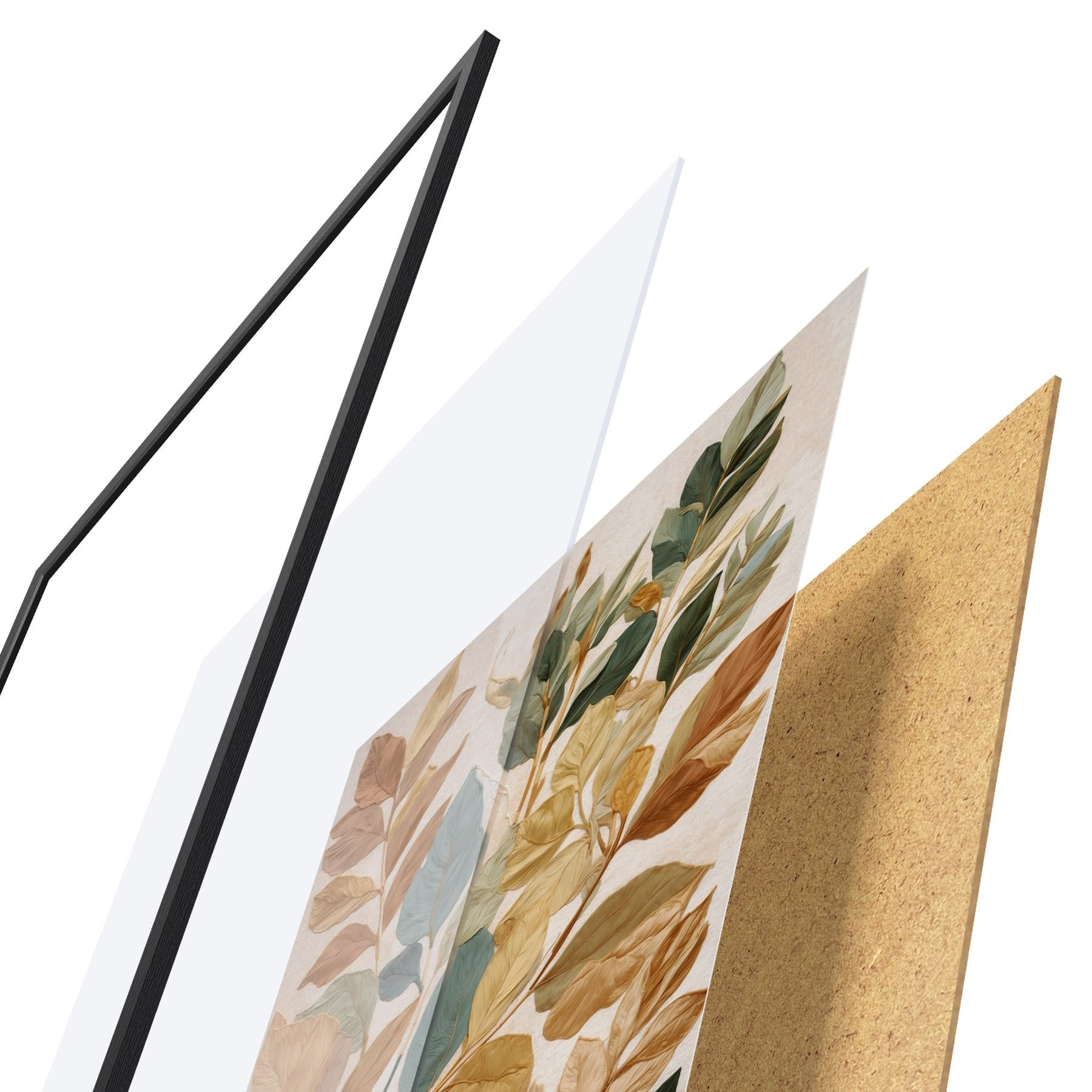 Plakāts sastāv no rāmja, pleksstikla, iespiestā attēla un skaidu plātnes pamatnes. Plakātu var uzreiz piekarināt pie sienas, pateicoties aizmugurē esošajiem stiprinājumiem.