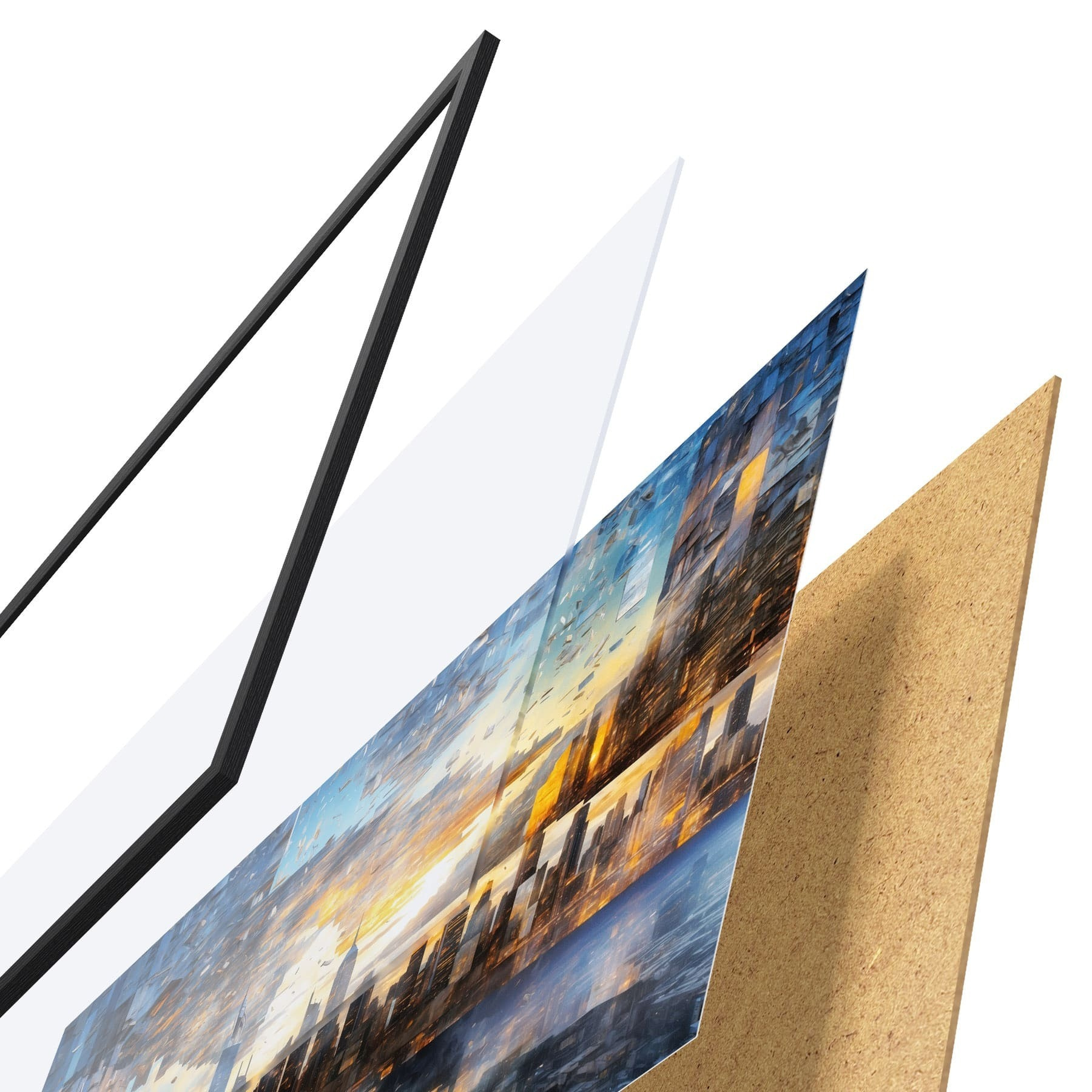 Plakāts sastāv no rāmja, pleksstikla, iespiestā attēla un skaidu plātnes pamatnes. Plakātu var uzreiz piekarināt pie sienas, pateicoties aizmugurē esošajiem stiprinājumiem.