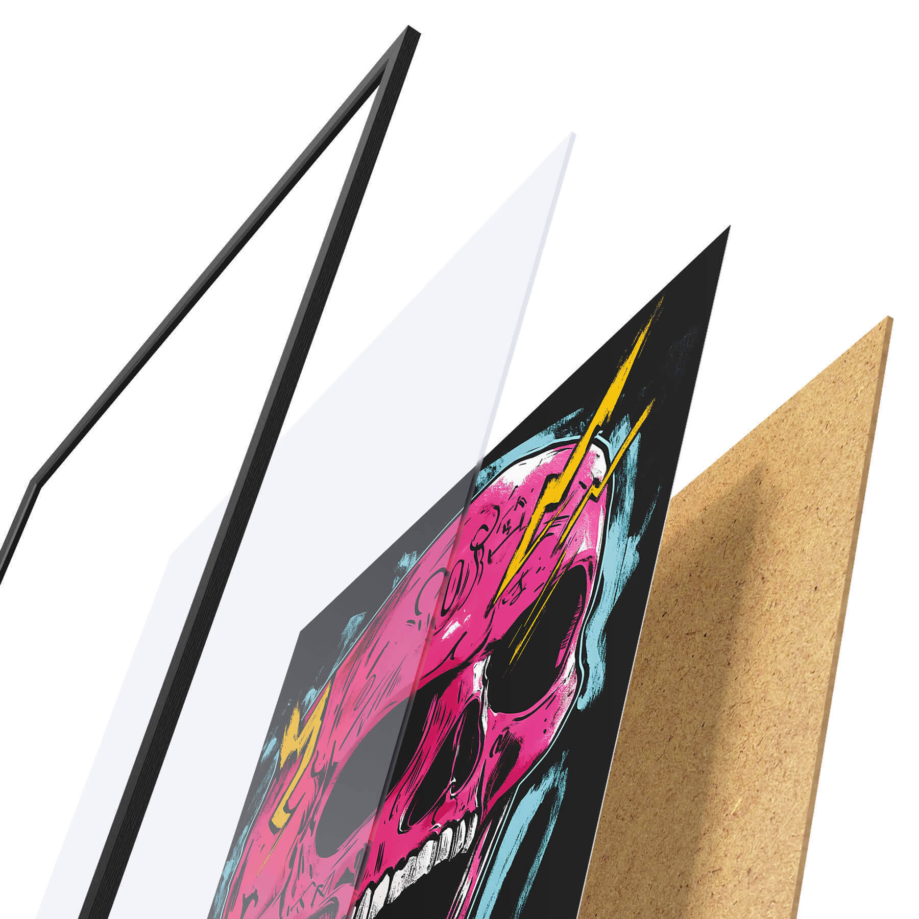 Plakāts sastāv no rāmja, pleksstikla, iespiestā attēla un skaidu plātnes pamatnes. Plakātu var uzreiz piekarināt pie sienas, pateicoties aizmugurē esošajiem stiprinājumiem.