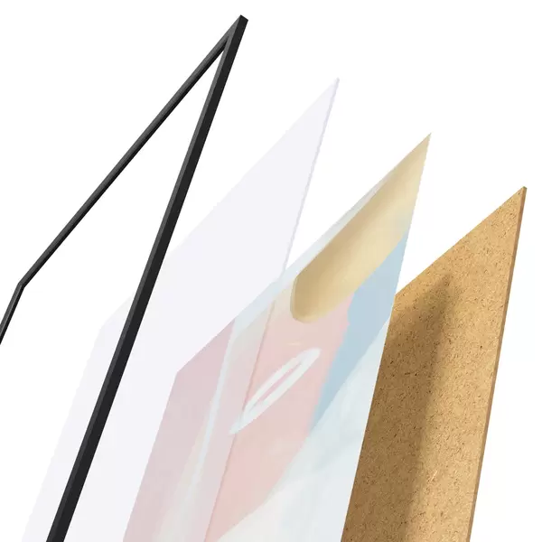 Plakāts sastāv no rāmja, pleksstikla, iespiestā attēla un skaidu plātnes pamatnes. Plakātu var uzreiz piekarināt pie sienas, pateicoties aizmugurē esošajiem stiprinājumiem.