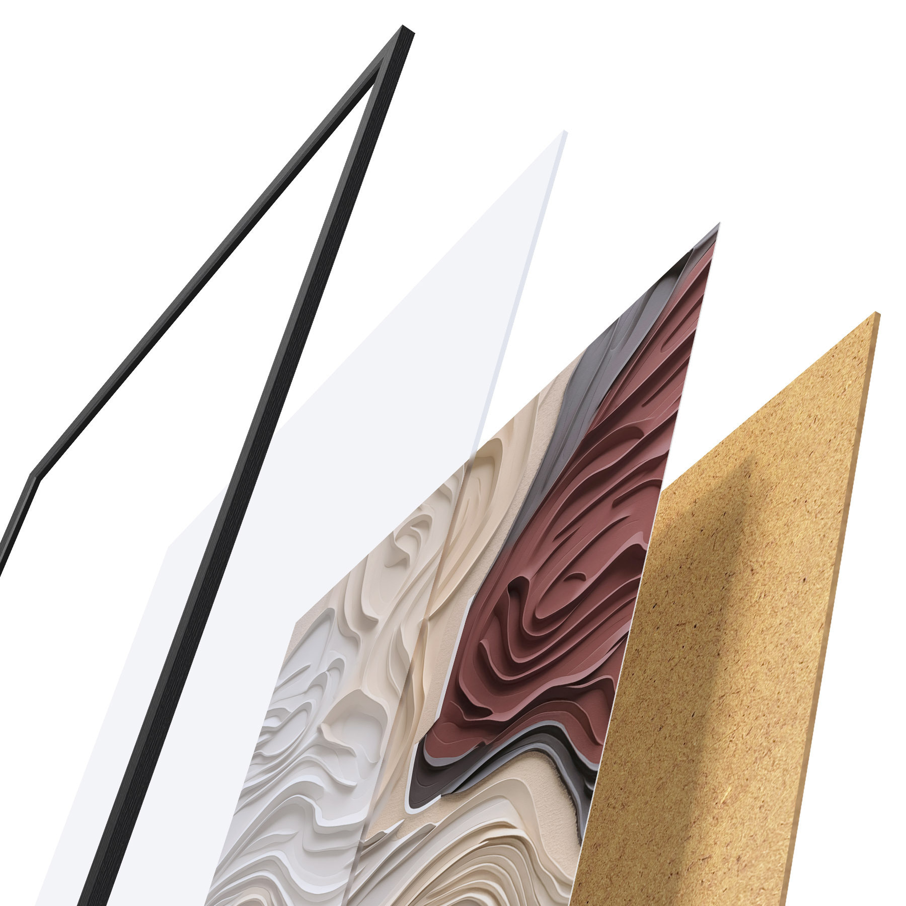 Plakāts sastāv no rāmja, pleksstikla, iespiestā attēla un skaidu plātnes pamatnes. Plakātu var uzreiz piekarināt pie sienas, pateicoties aizmugurē esošajiem stiprinājumiem.