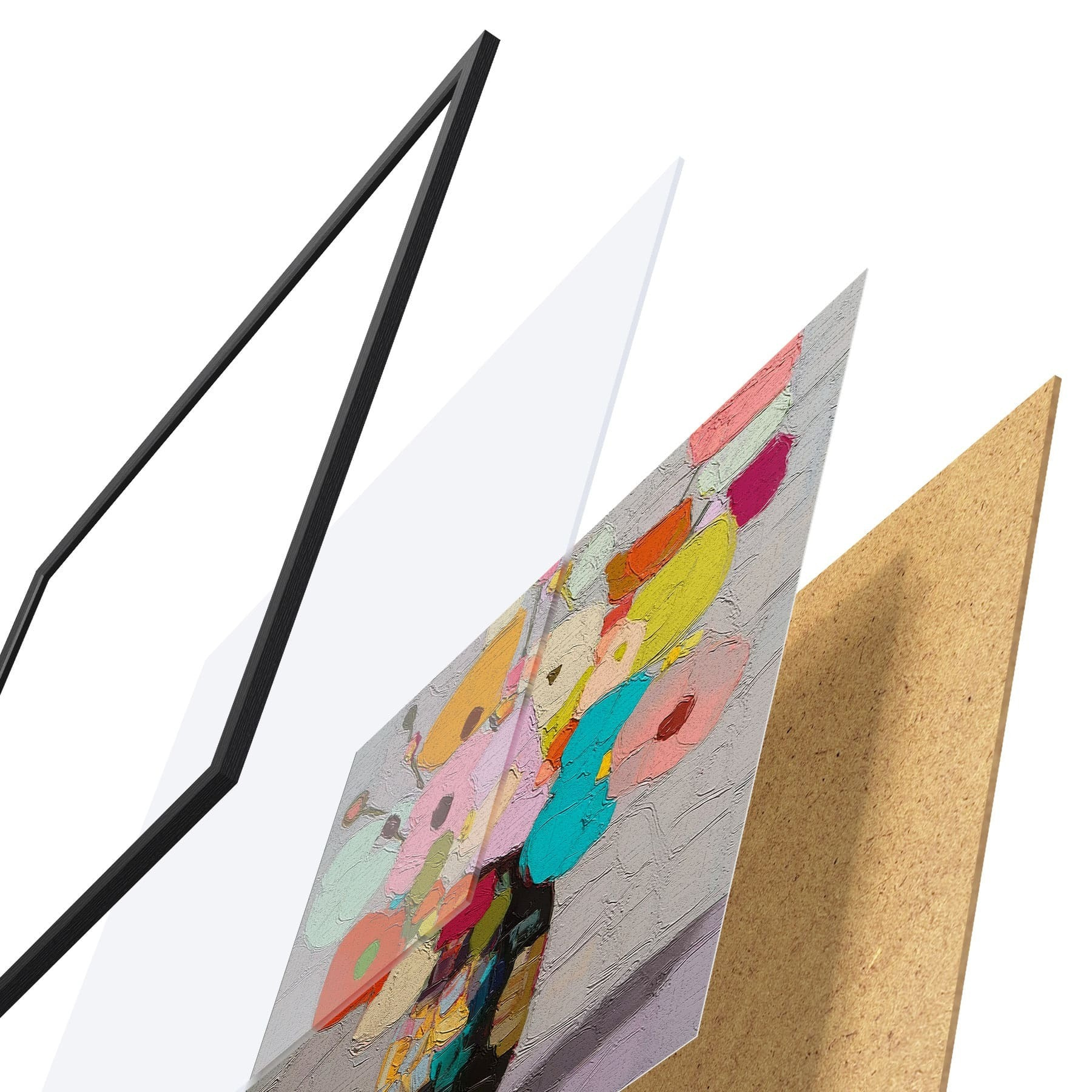 Plakāts sastāv no rāmja, pleksstikla, iespiestā attēla un skaidu plātnes pamatnes. Plakātu var uzreiz piekarināt pie sienas, pateicoties aizmugurē esošajiem stiprinājumiem.