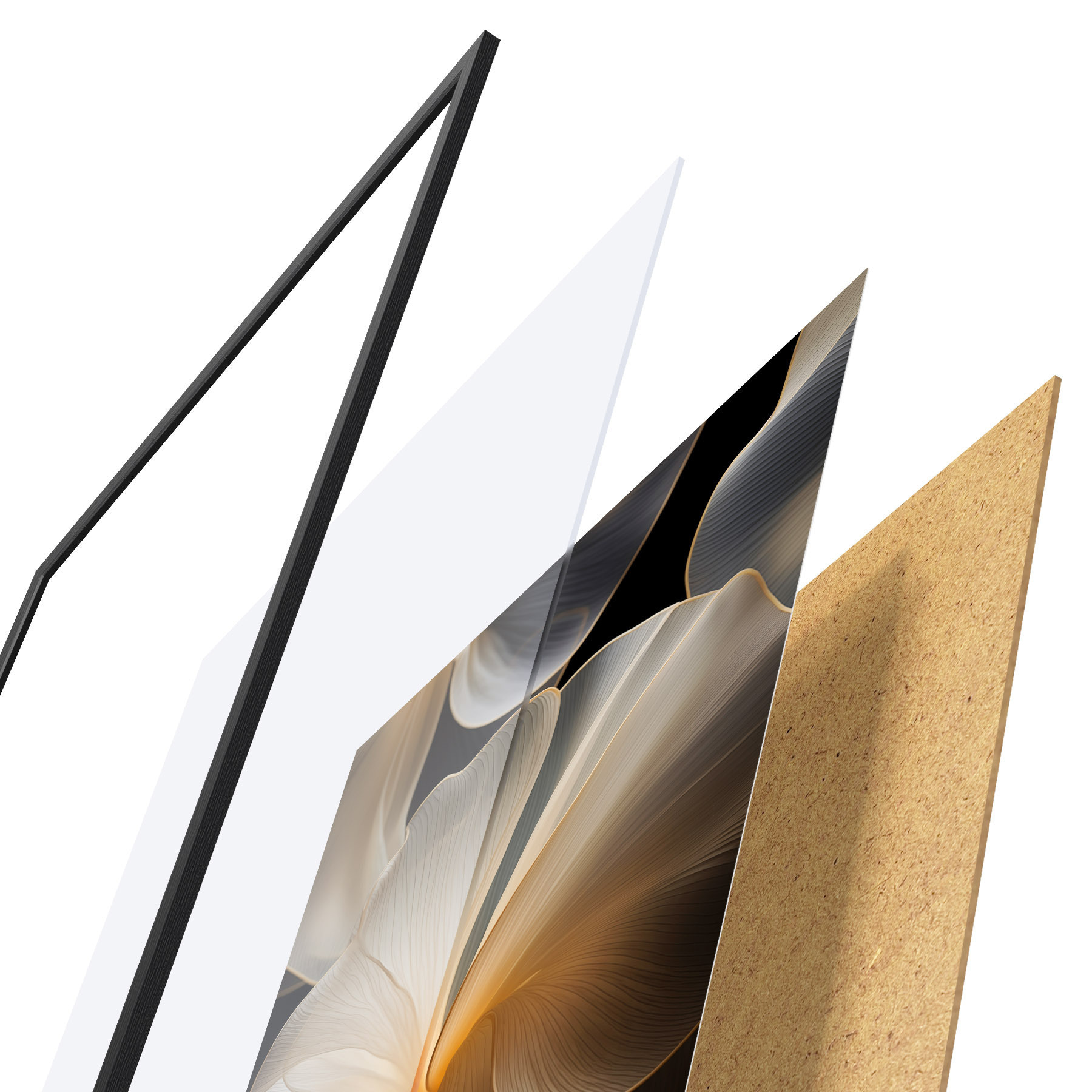 Plakāts sastāv no rāmja, pleksstikla, iespiestā attēla un skaidu plātnes pamatnes. Plakātu var uzreiz piekarināt pie sienas, pateicoties aizmugurē esošajiem stiprinājumiem.