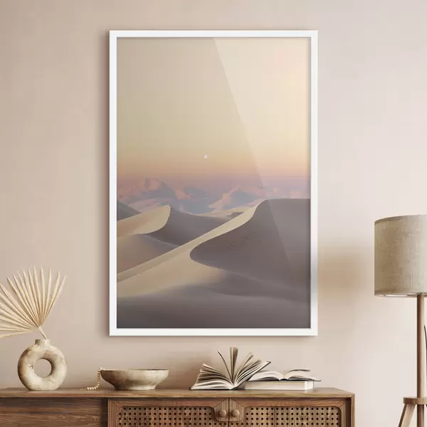 SākumlapaPlakātu katalogsPlakāti buferiPlakāts Tuksneša ainava ar viļņojošām smilšu kāpām zem maiga pasteļtoņa debesīm, fonā redzamas tālas kalnu virsotnes. Nr f47865