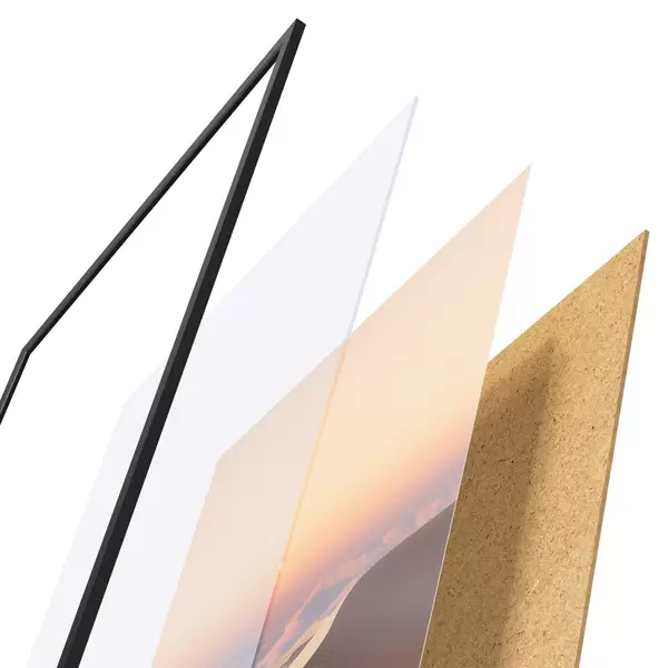 Plakāts sastāv no rāmja, pleksstikla, iespiestā attēla un skaidu plātnes pamatnes. Plakātu var uzreiz piekarināt pie sienas, pateicoties aizmugurē esošajiem stiprinājumiem.