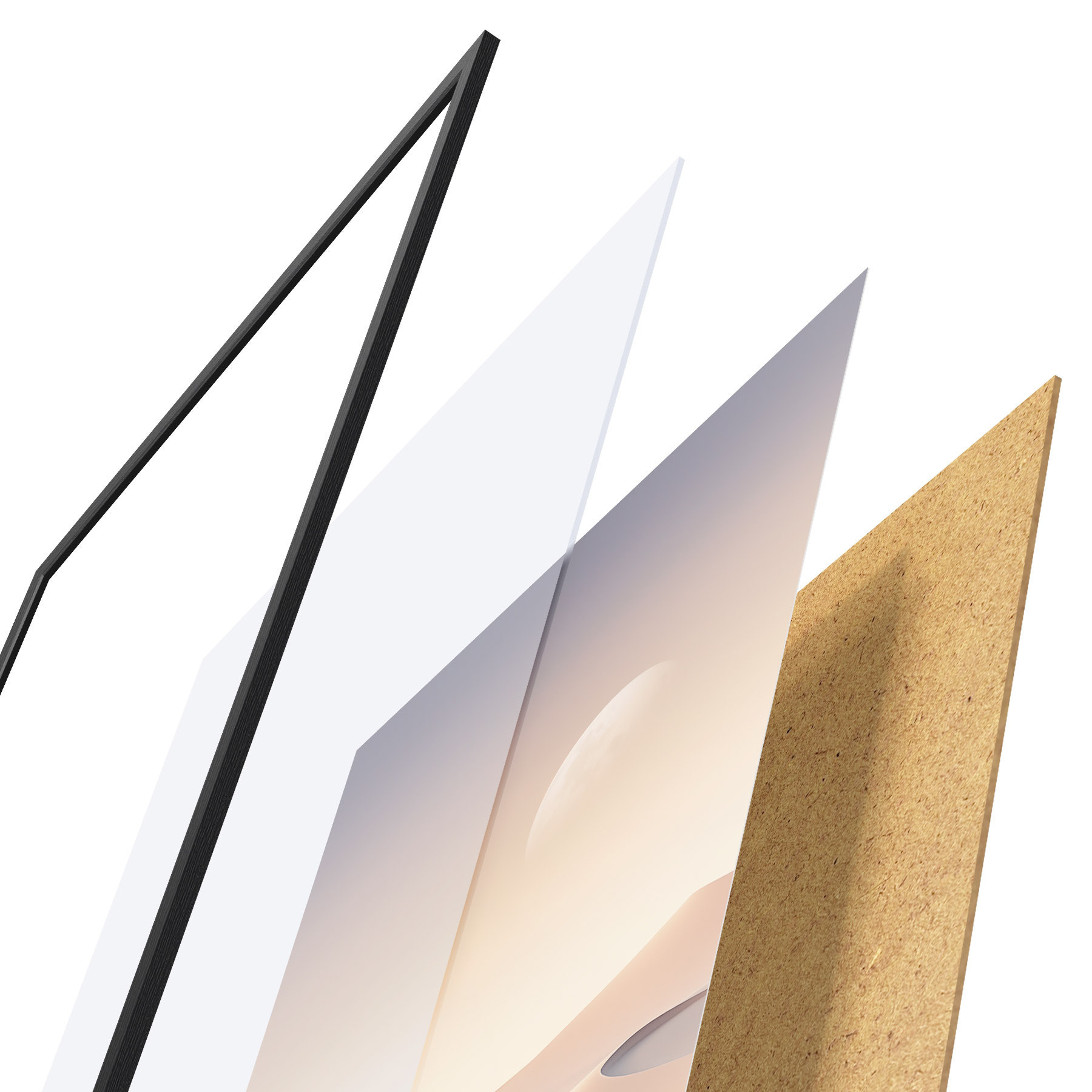 Plakāts sastāv no rāmja, pleksstikla, iespiestā attēla un skaidu plātnes pamatnes. Plakātu var uzreiz piekarināt pie sienas, pateicoties aizmugurē esošajiem stiprinājumiem.