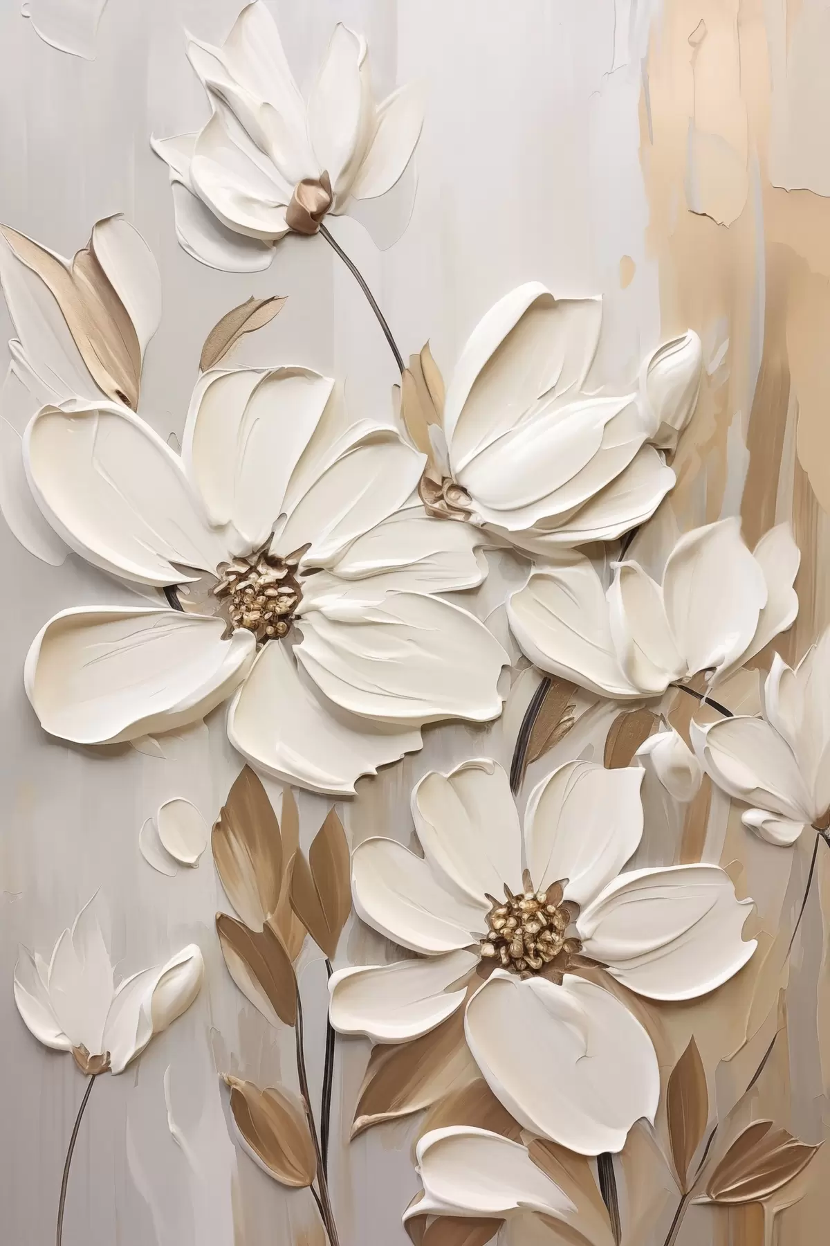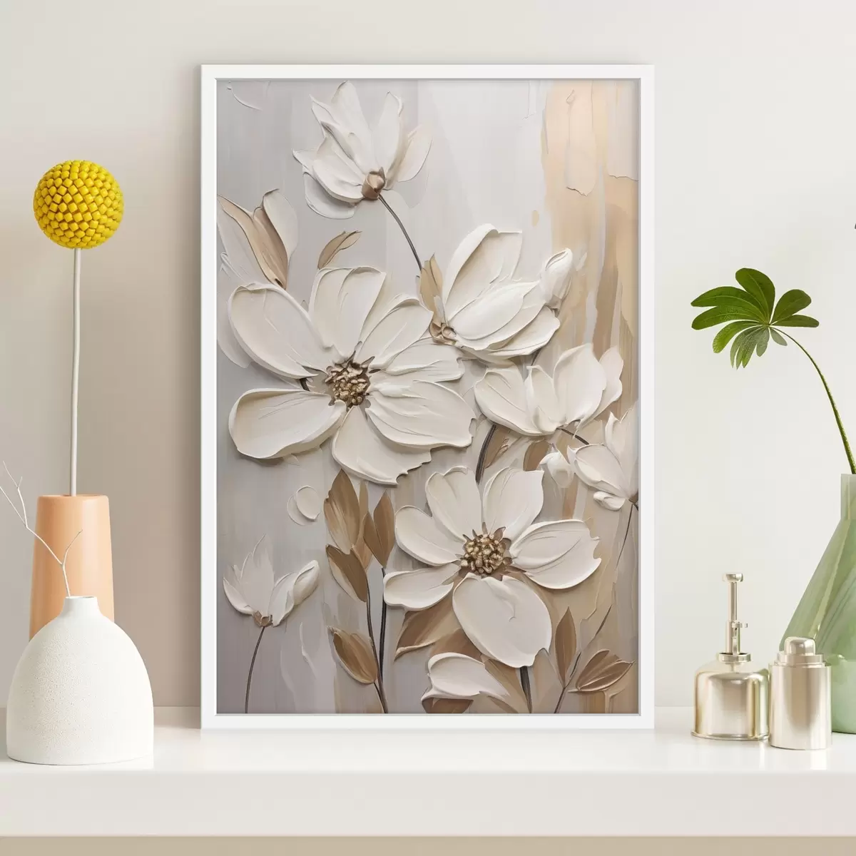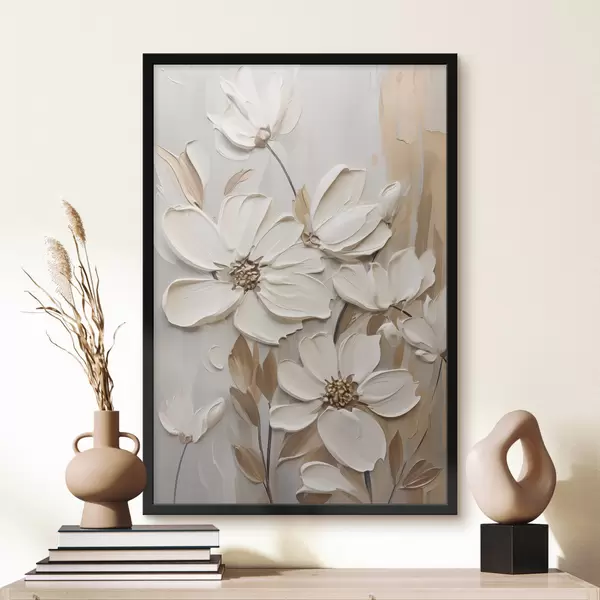SākumlapaPlakātu katalogsPlakāti buferiPlakāts Abstraktas baltas puķes ar teksturētiem ziedlapiem uz neitrāla fona ar smalkām otu triepienu imitācijām. Nr f47873