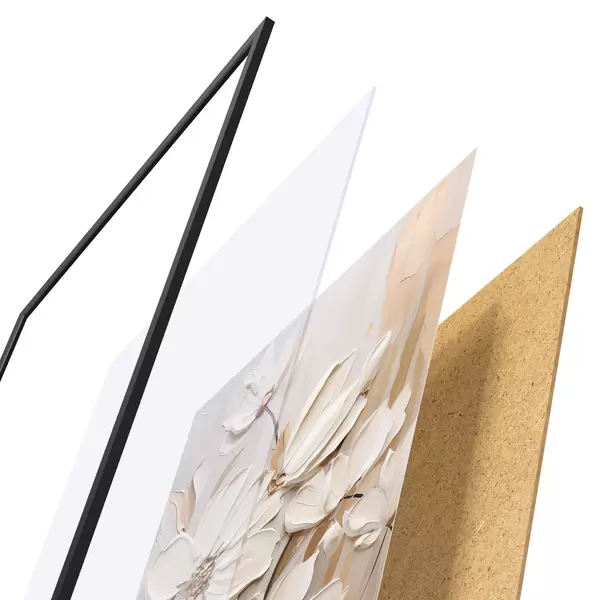 Plakāts sastāv no rāmja, pleksstikla, iespiestā attēla un skaidu plātnes pamatnes. Plakātu var uzreiz piekarināt pie sienas, pateicoties aizmugurē esošajiem stiprinājumiem.