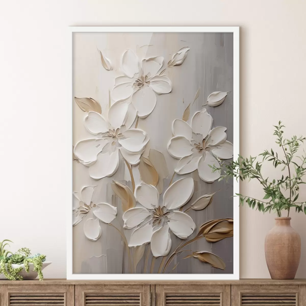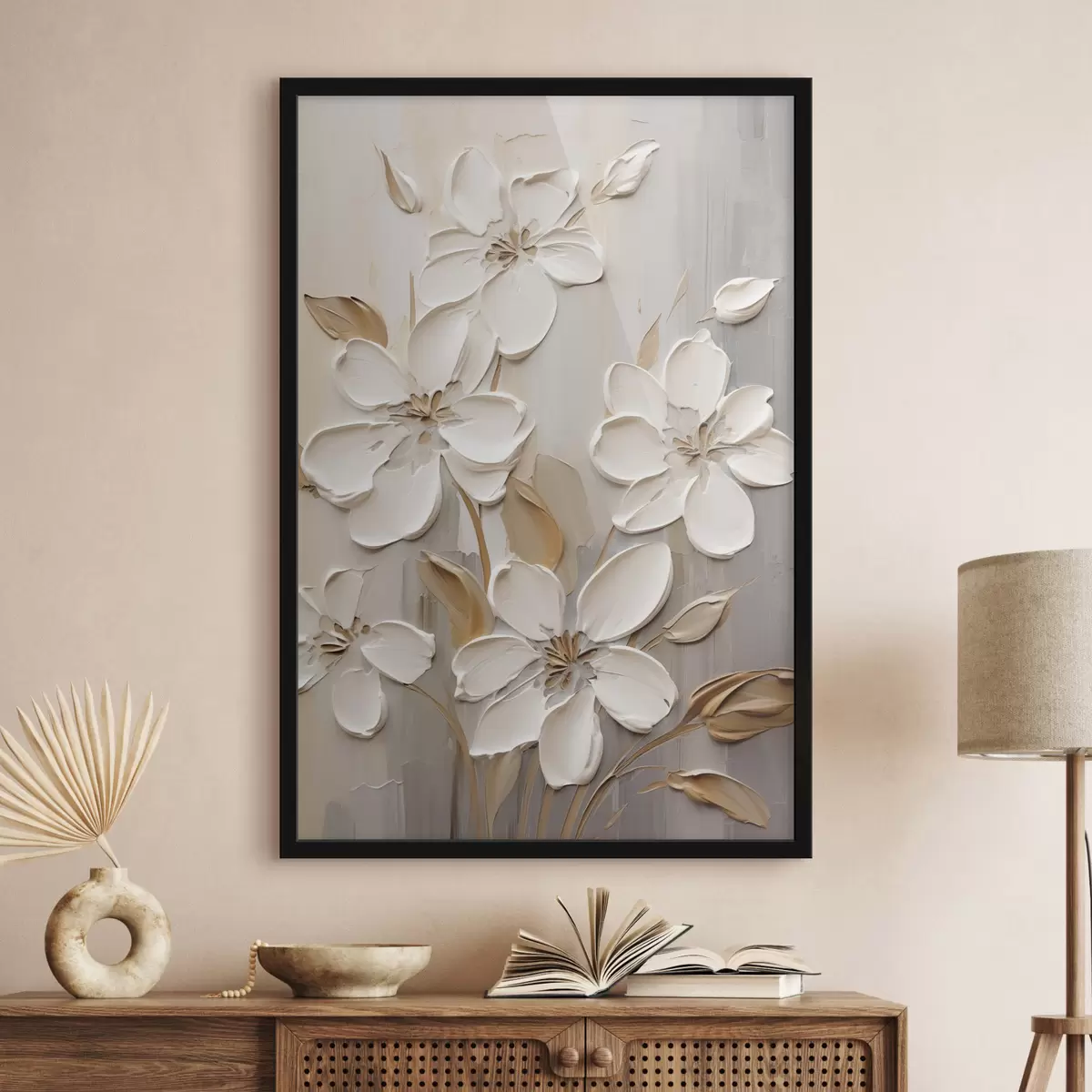 SākumlapaPlakātu katalogsPlakāti buferiPlakāts Abstraktas baltas puķes ar teksturētiem ziedlapiem uz neitrāla fona ar smalkām otu triepienu imitācijām. Nr f47874
