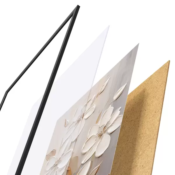 Plakāts sastāv no rāmja, pleksstikla, iespiestā attēla un skaidu plātnes pamatnes. Plakātu var uzreiz piekarināt pie sienas, pateicoties aizmugurē esošajiem stiprinājumiem.