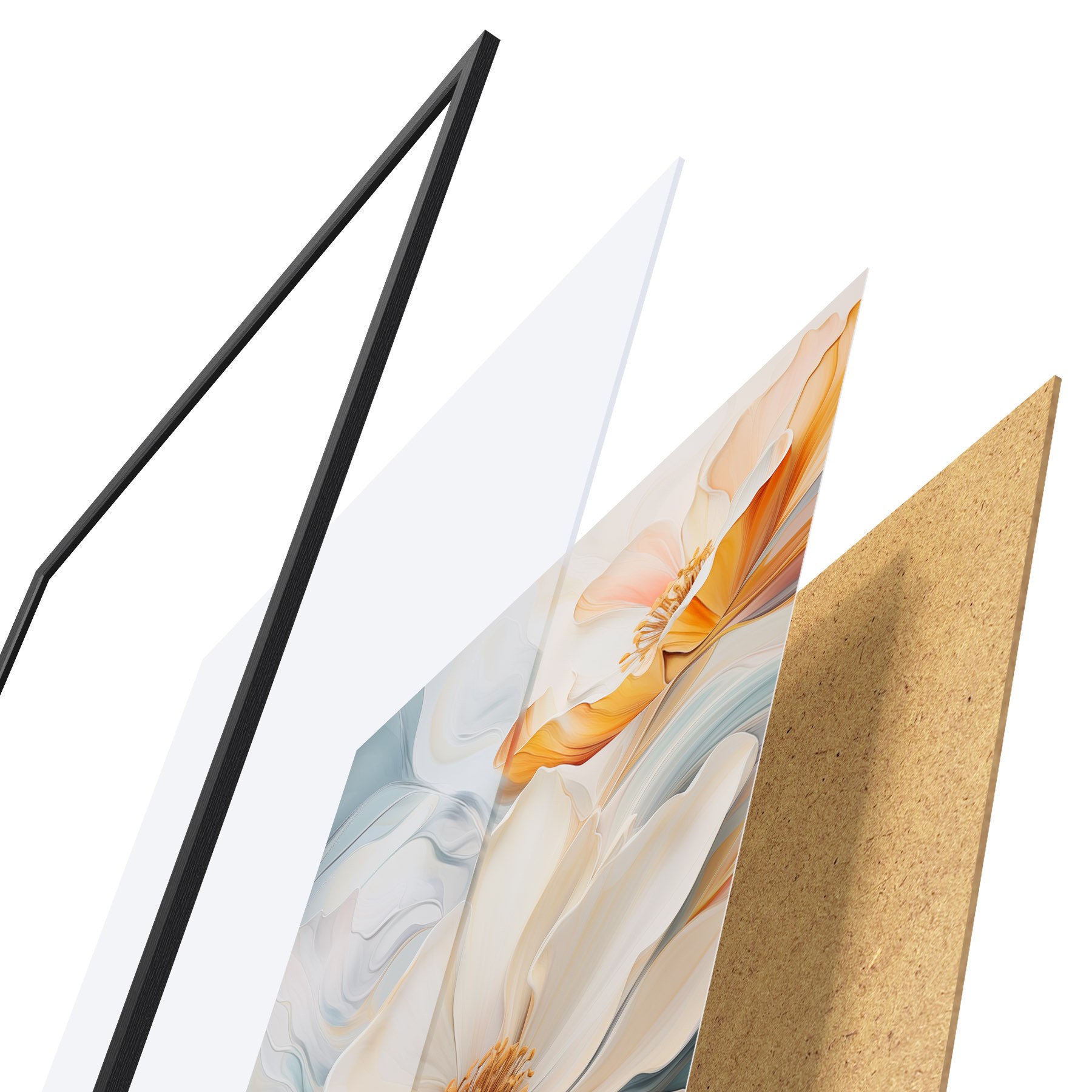 Plakāts sastāv no rāmja, pleksstikla, iespiestā attēla un skaidu plātnes pamatnes. Plakātu var uzreiz piekarināt pie sienas, pateicoties aizmugurē esošajiem stiprinājumiem.
