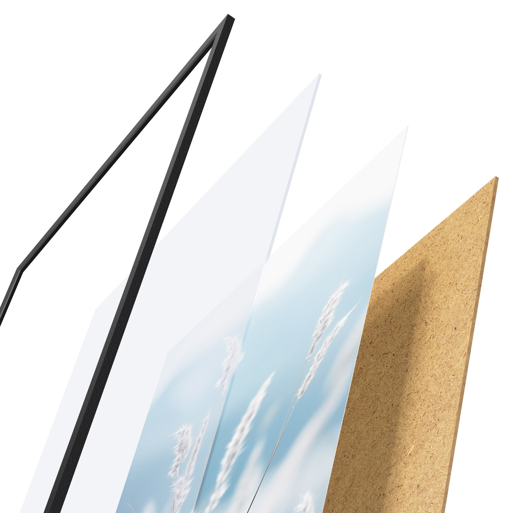 Plakāts sastāv no rāmja, pleksstikla, iespiestā attēla un skaidu plātnes pamatnes. Plakātu var uzreiz piekarināt pie sienas, pateicoties aizmugurē esošajiem stiprinājumiem.