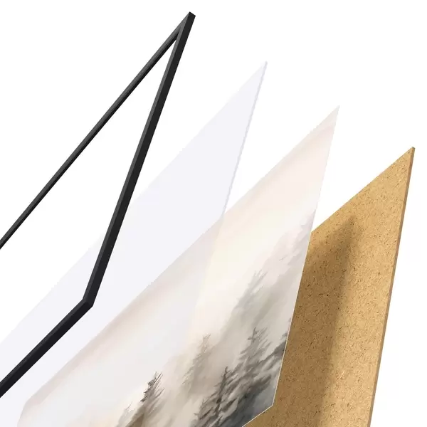 Plakāts sastāv no rāmja, pleksstikla, iespiestā attēla un skaidu plātnes pamatnes. Plakātu var uzreiz piekarināt pie sienas, pateicoties aizmugurē esošajiem stiprinājumiem.