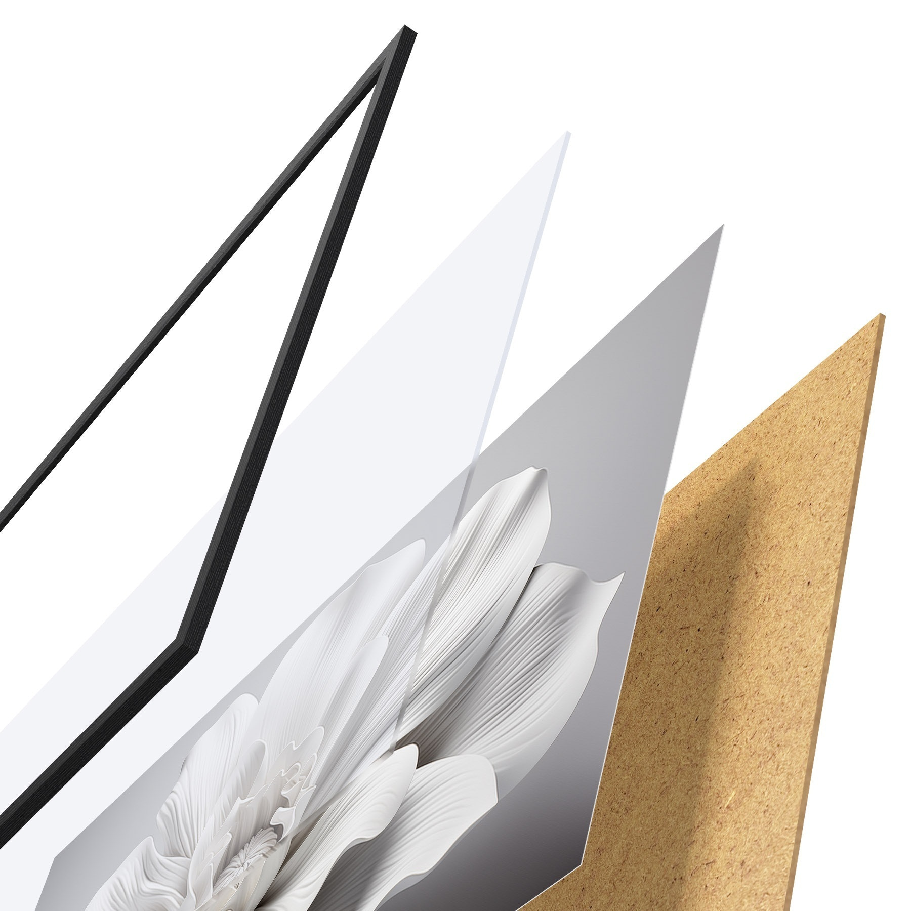 Plakāts sastāv no rāmja, pleksstikla, iespiestā attēla un skaidu plātnes pamatnes. Plakātu var uzreiz piekarināt pie sienas, pateicoties aizmugurē esošajiem stiprinājumiem.