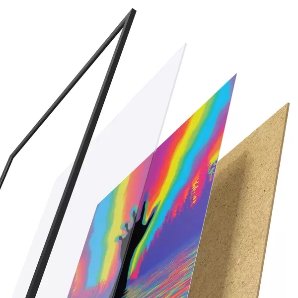 Plakāts sastāv no rāmja, pleksstikla, iespiestā attēla un skaidu plātnes pamatnes. Plakātu var uzreiz piekarināt pie sienas, pateicoties aizmugurē esošajiem stiprinājumiem.