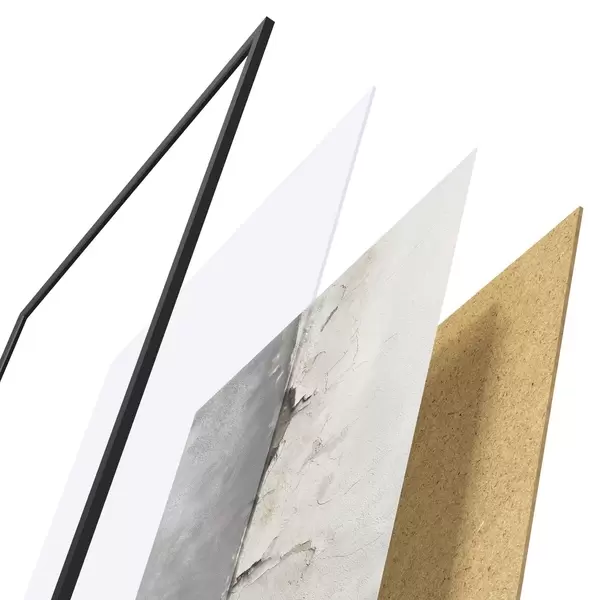Plakāts sastāv no rāmja, pleksstikla, iespiestā attēla un skaidu plātnes pamatnes. Plakātu var uzreiz piekarināt pie sienas, pateicoties aizmugurē esošajiem stiprinājumiem.