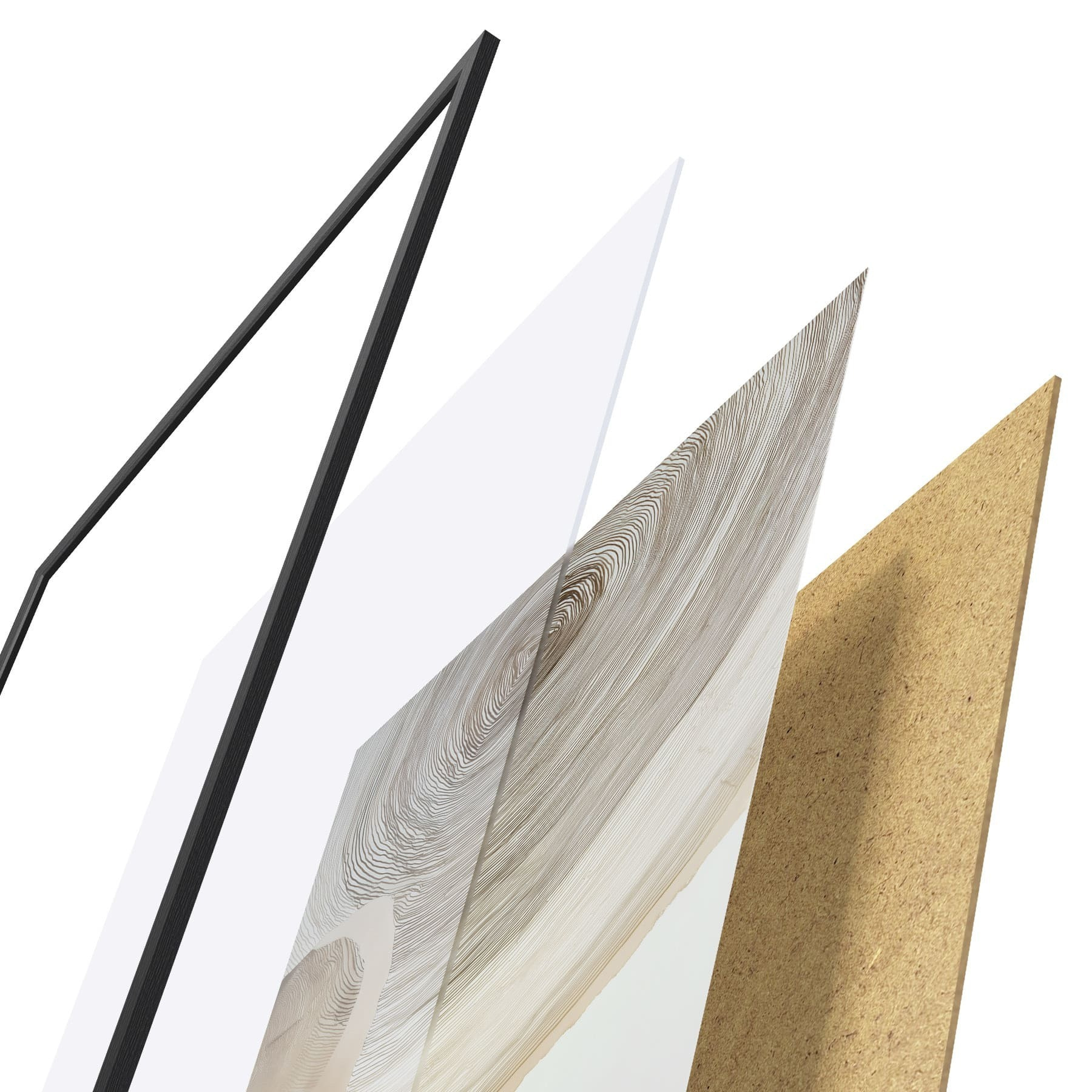 Plakāts sastāv no rāmja, pleksstikla, iespiestā attēla un skaidu plātnes pamatnes. Plakātu var uzreiz piekarināt pie sienas, pateicoties aizmugurē esošajiem stiprinājumiem.