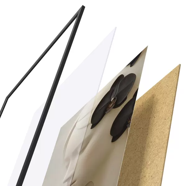 Plakāts sastāv no rāmja, pleksstikla, iespiestā attēla un skaidu plātnes pamatnes. Plakātu var uzreiz piekarināt pie sienas, pateicoties aizmugurē esošajiem stiprinājumiem.