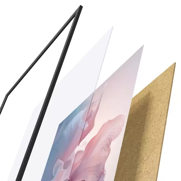 Plakāts sastāv no rāmja, pleksstikla, iespiestā attēla un skaidu plātnes pamatnes. Plakātu var uzreiz piekarināt pie sienas, pateicoties aizmugurē esošajiem stiprinājumiem.