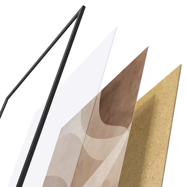 Plakāts sastāv no rāmja, pleksstikla, iespiestā attēla un skaidu plātnes pamatnes. Plakātu var uzreiz piekarināt pie sienas, pateicoties aizmugurē esošajiem stiprinājumiem.