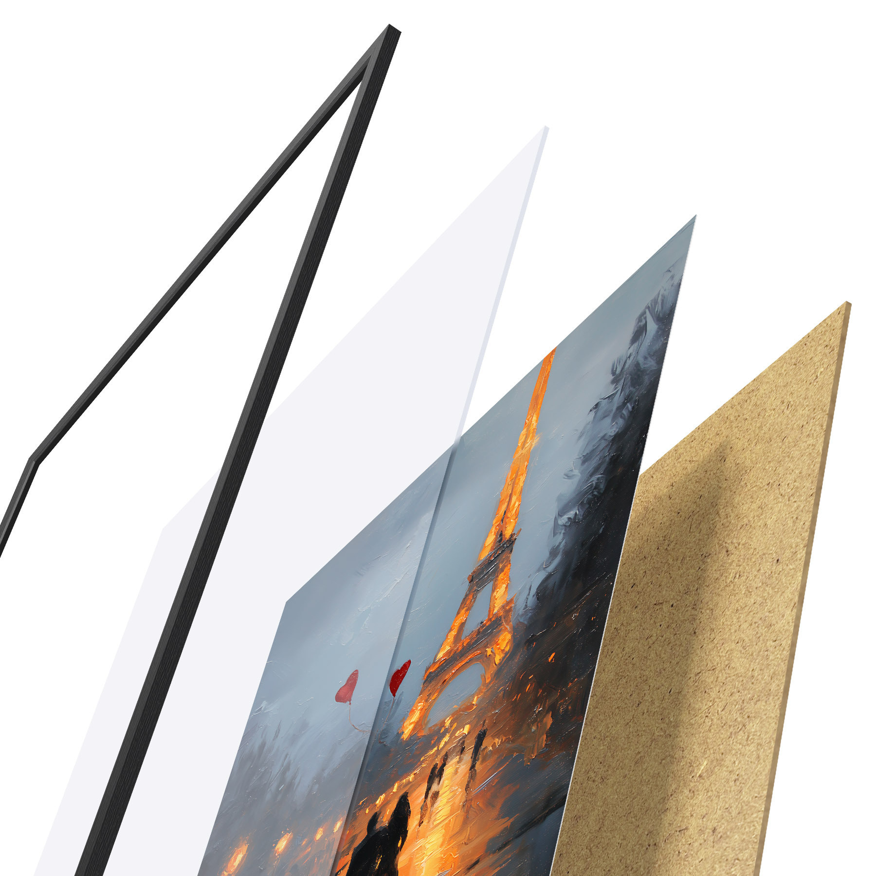 Plakāts sastāv no rāmja, pleksstikla, iespiestā attēla un skaidu plātnes pamatnes. Plakātu var uzreiz piekarināt pie sienas, pateicoties aizmugurē esošajiem stiprinājumiem.