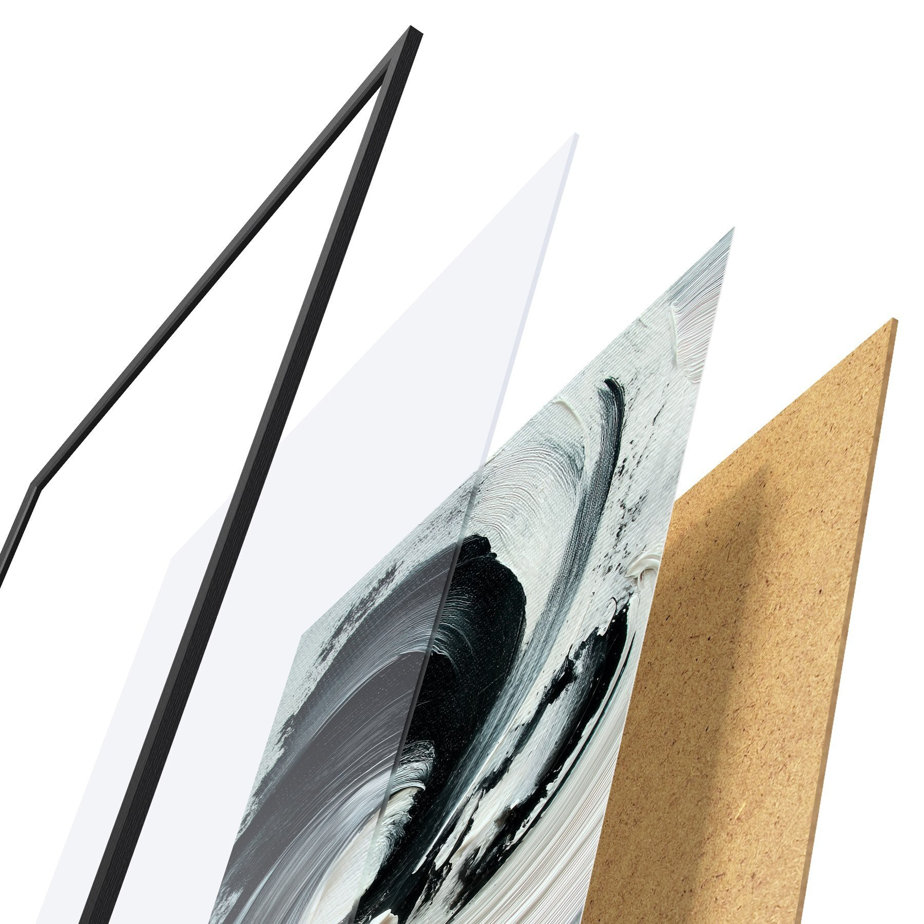 Plakāts sastāv no rāmja, pleksstikla, iespiestā attēla un skaidu plātnes pamatnes. Plakātu var uzreiz piekarināt pie sienas, pateicoties aizmugurē esošajiem stiprinājumiem.