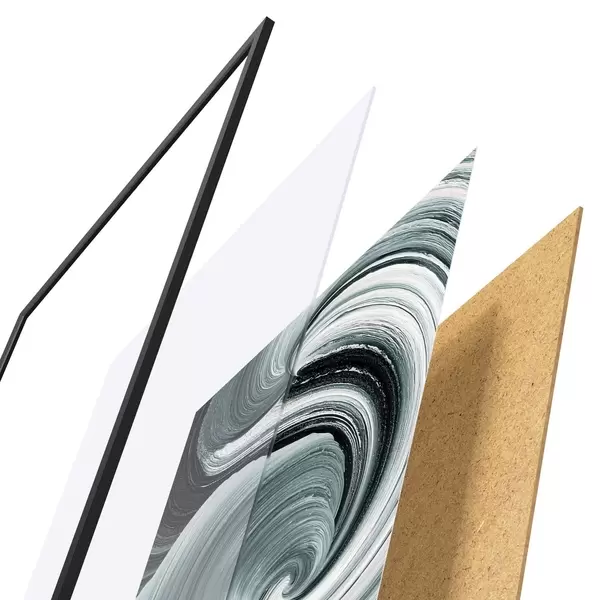 Plakāts sastāv no rāmja, pleksstikla, iespiestā attēla un skaidu plātnes pamatnes. Plakātu var uzreiz piekarināt pie sienas, pateicoties aizmugurē esošajiem stiprinājumiem.