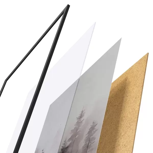 Plakāts sastāv no rāmja, pleksstikla, iespiestā attēla un skaidu plātnes pamatnes. Plakātu var uzreiz piekarināt pie sienas, pateicoties aizmugurē esošajiem stiprinājumiem.