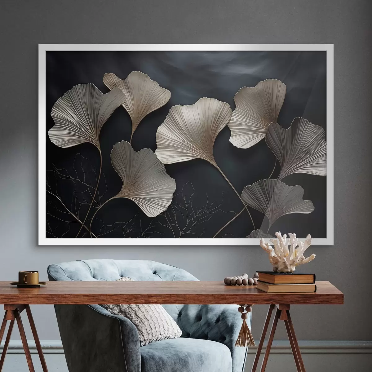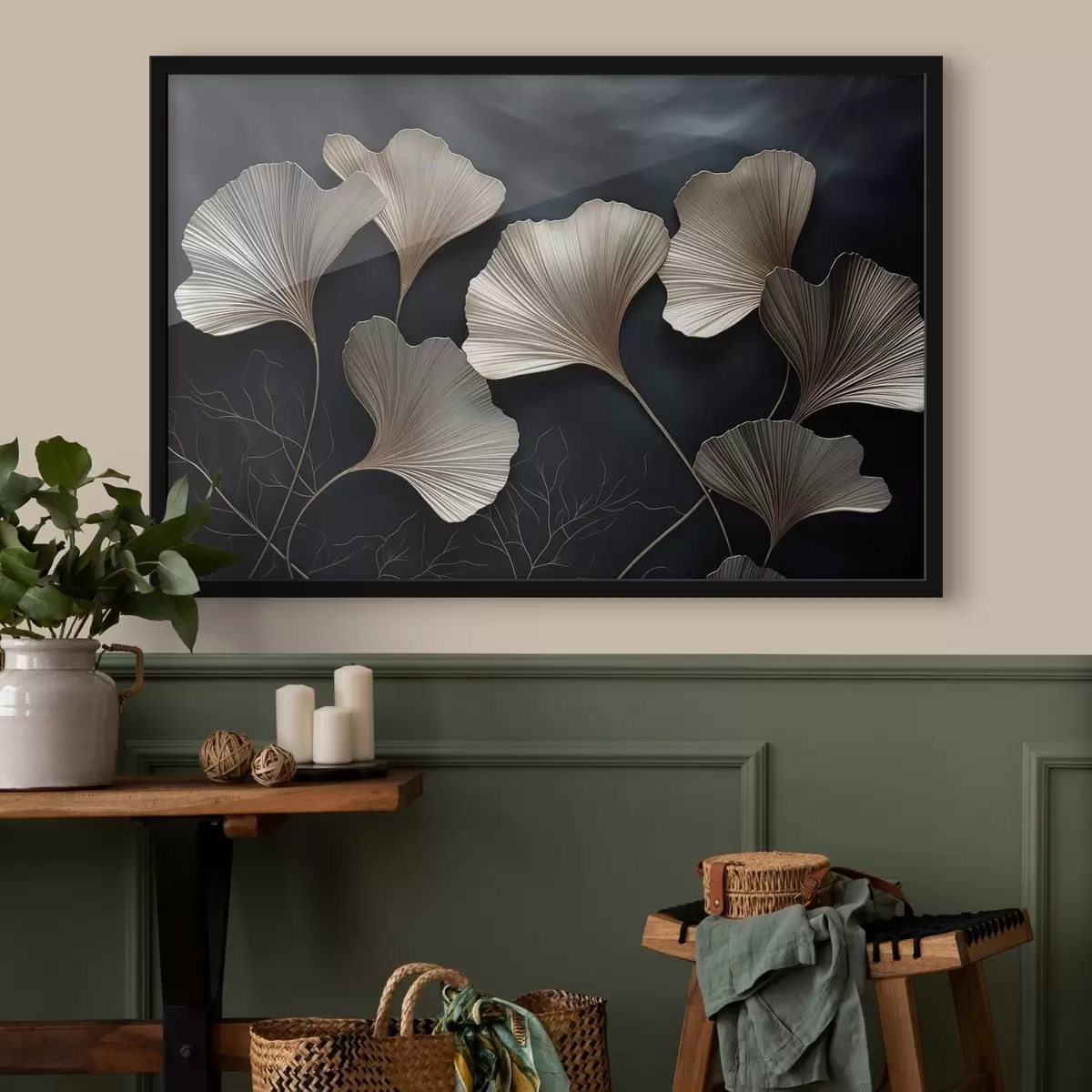 Plakāts Ginkgo lapas uz tumša fona Nr f48008