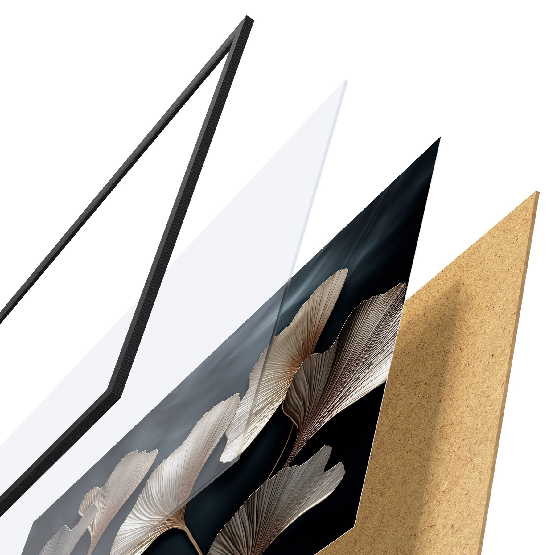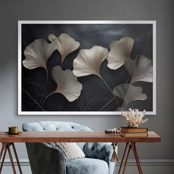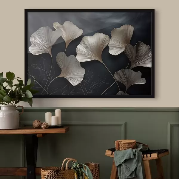 Plakāts Ginkgo lapas uz tumša fona f48008