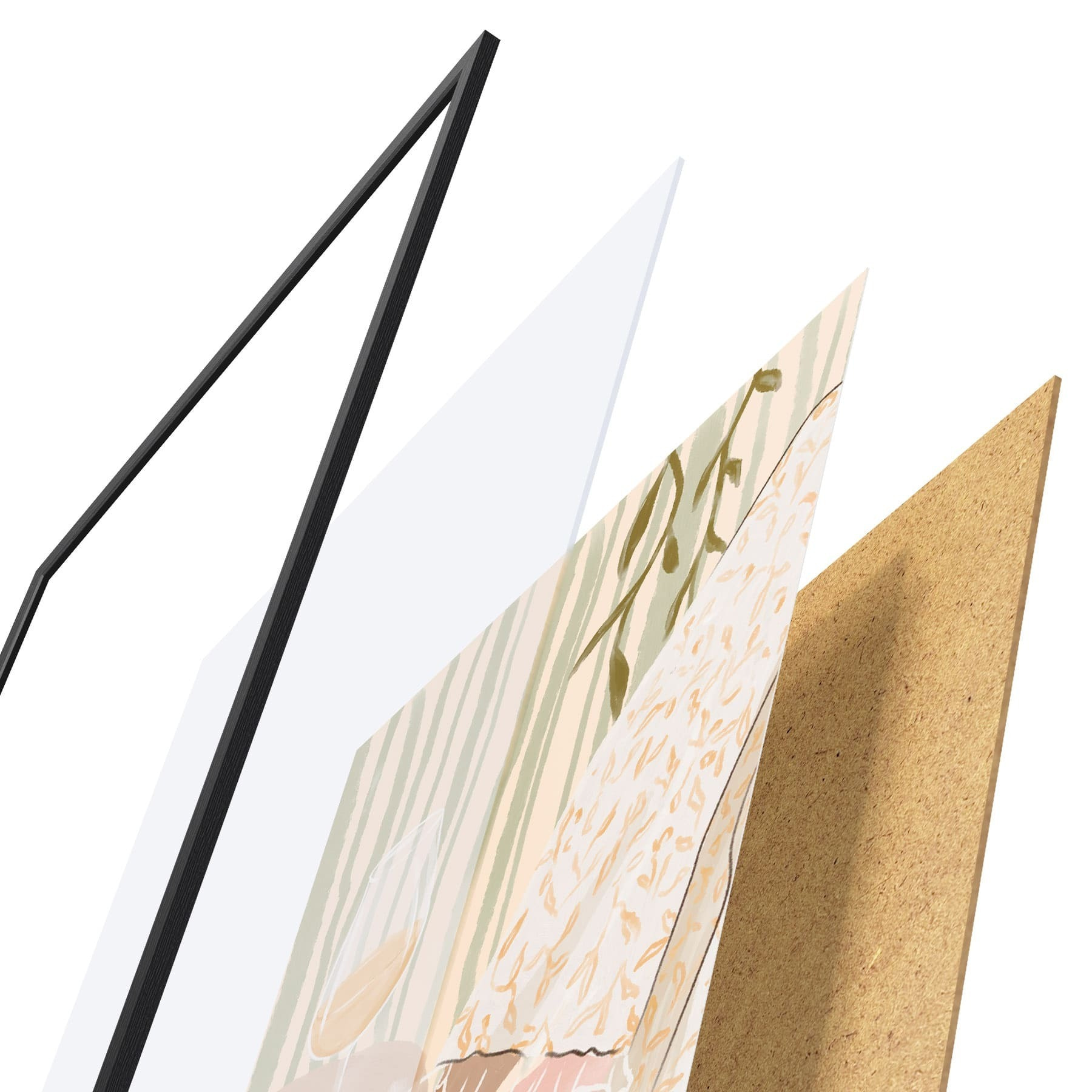 Plakāts sastāv no rāmja, pleksstikla, iespiestā attēla un skaidu plātnes pamatnes. Plakātu var uzreiz piekarināt pie sienas, pateicoties aizmugurē esošajiem stiprinājumiem.