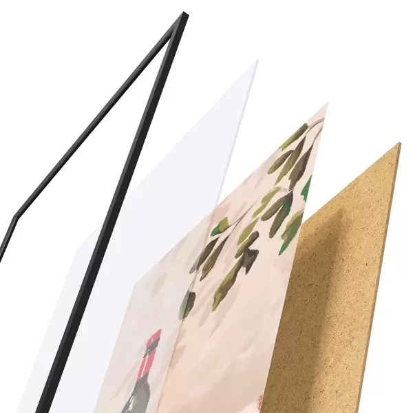 Plakāts sastāv no rāmja, pleksstikla, iespiestā attēla un skaidu plātnes pamatnes. Plakātu var uzreiz piekarināt pie sienas, pateicoties aizmugurē esošajiem stiprinājumiem.