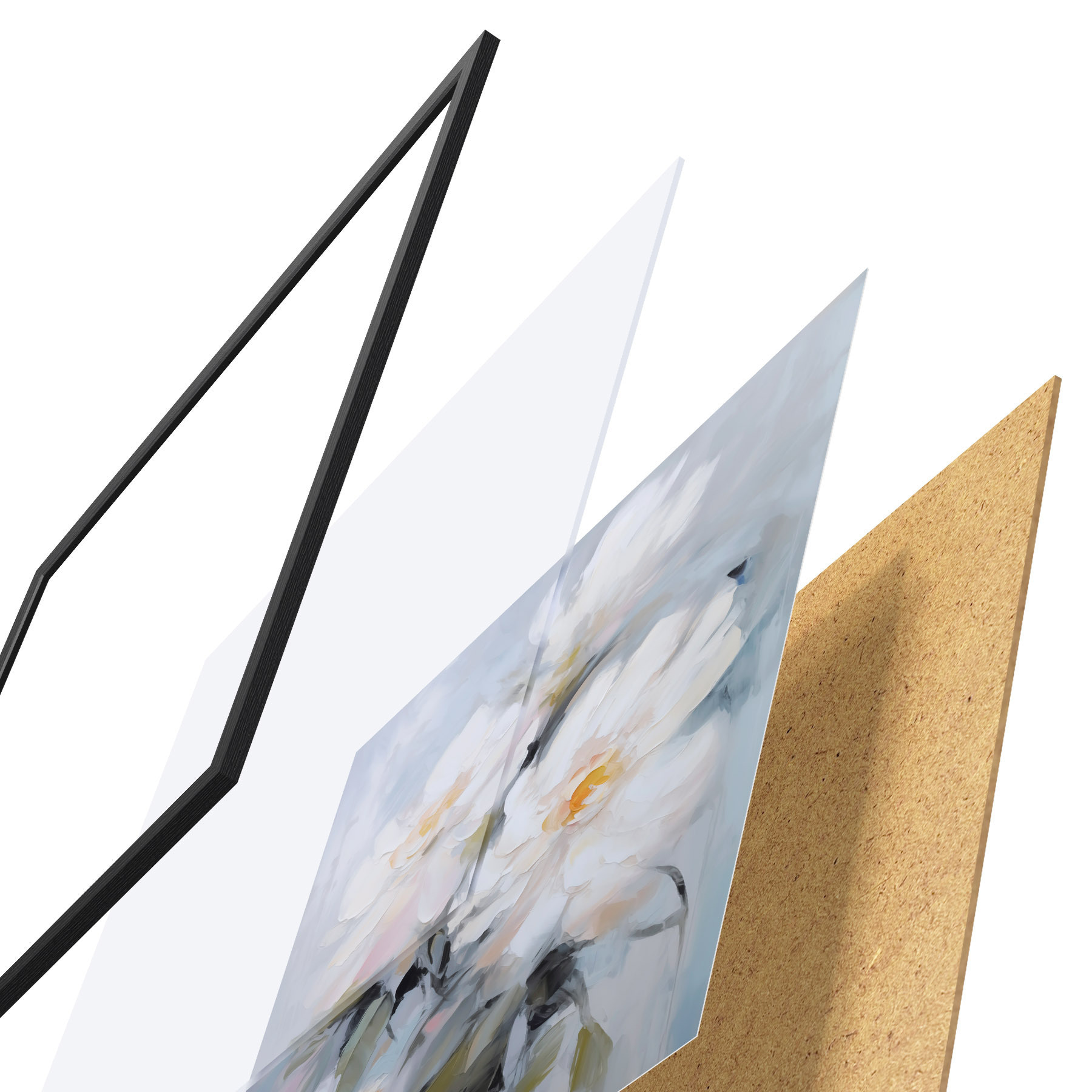 Plakāts sastāv no rāmja, pleksstikla, iespiestā attēla un skaidu plātnes pamatnes. Plakātu var uzreiz piekarināt pie sienas, pateicoties aizmugurē esošajiem stiprinājumiem.