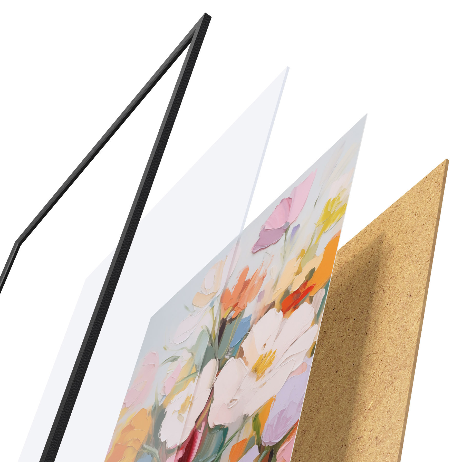 Plakāts sastāv no rāmja, pleksstikla, iespiestā attēla un skaidu plātnes pamatnes. Plakātu var uzreiz piekarināt pie sienas, pateicoties aizmugurē esošajiem stiprinājumiem.