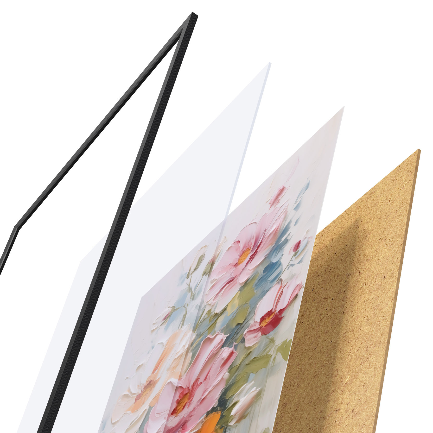 Plakāts sastāv no rāmja, pleksstikla, iespiestā attēla un skaidu plātnes pamatnes. Plakātu var uzreiz piekarināt pie sienas, pateicoties aizmugurē esošajiem stiprinājumiem.