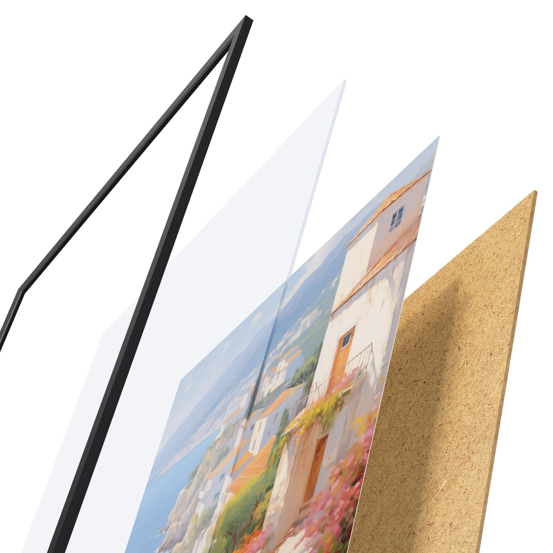 Plakāts sastāv no rāmja, pleksstikla, iespiestā attēla un skaidu plātnes pamatnes. Plakātu var uzreiz piekarināt pie sienas, pateicoties aizmugurē esošajiem stiprinājumiem.