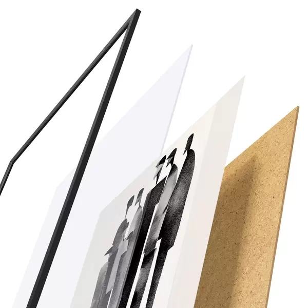 Plakāts sastāv no rāmja, pleksstikla, iespiestā attēla un skaidu plātnes pamatnes. Plakātu var uzreiz piekarināt pie sienas, pateicoties aizmugurē esošajiem stiprinājumiem.