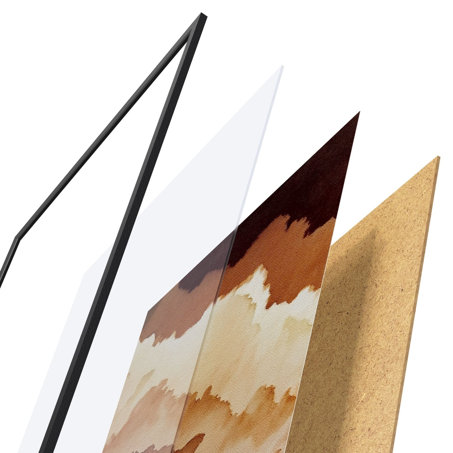 Plakāts sastāv no rāmja, pleksstikla, iespiestā attēla un skaidu plātnes pamatnes. Plakātu var uzreiz piekarināt pie sienas, pateicoties aizmugurē esošajiem stiprinājumiem.