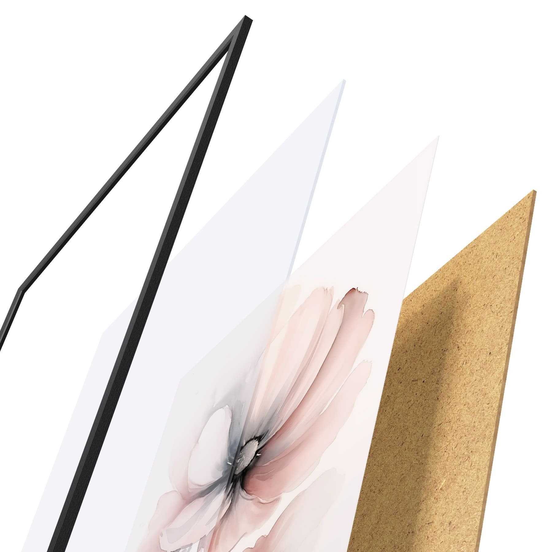 Plakāts sastāv no rāmja, pleksstikla, iespiestā attēla un skaidu plātnes pamatnes. Plakātu var uzreiz piekarināt pie sienas, pateicoties aizmugurē esošajiem stiprinājumiem.